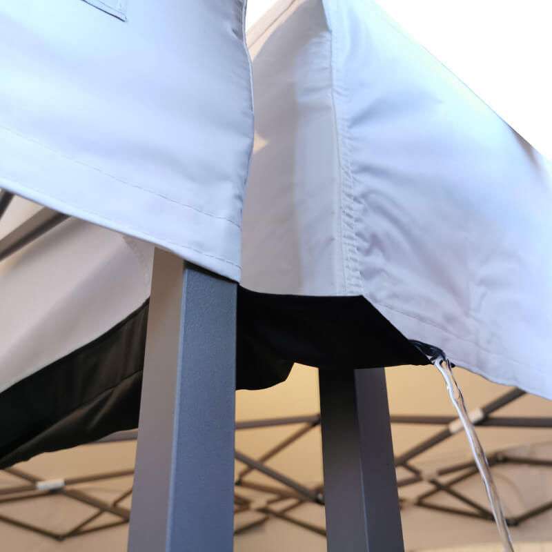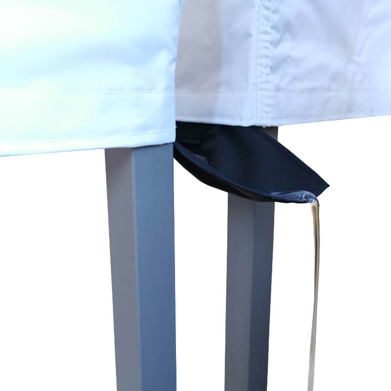 Regnrännor används för effektiv dränering av regnvatten som rinner mellan 2 anslutna hopfällbara tält.
