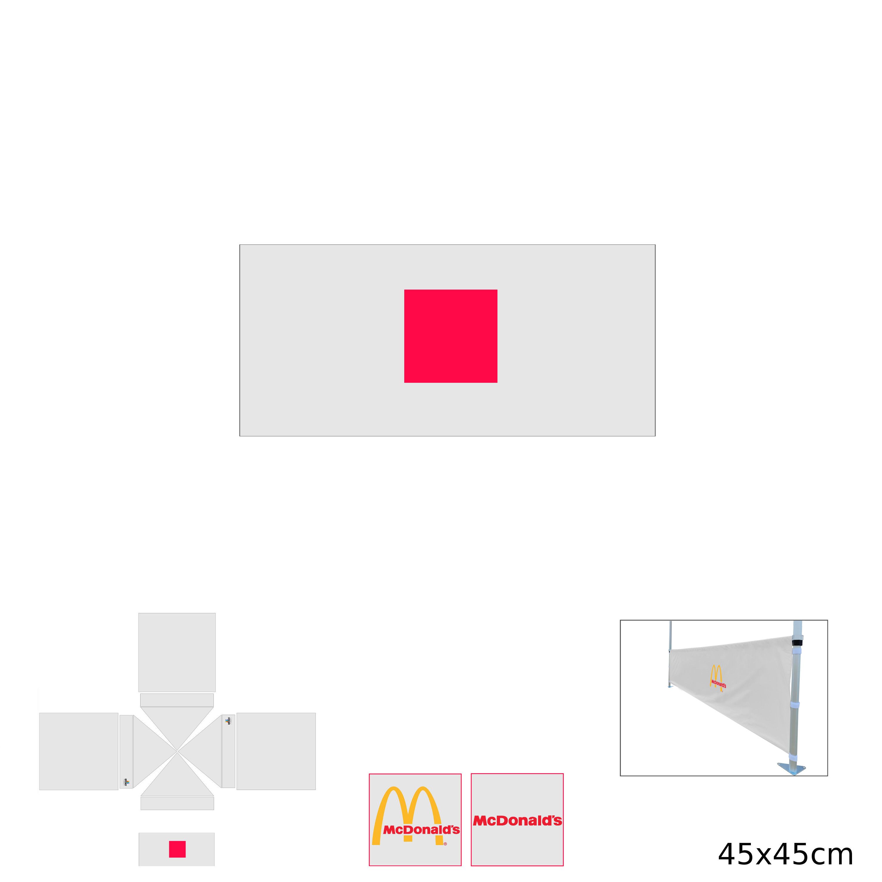Trycket görs på tusentals tält som vi har tillverkat i förväg. Trycket kan tillverkas direkt efter att betalningen mottagits och 2D-vizualiseringen har godkänts. Den genomsnittliga produktionstiden är 2 arbetsdagar, och i brådskande fall kan vi skicka reklamtälten samma dag via kurir.
