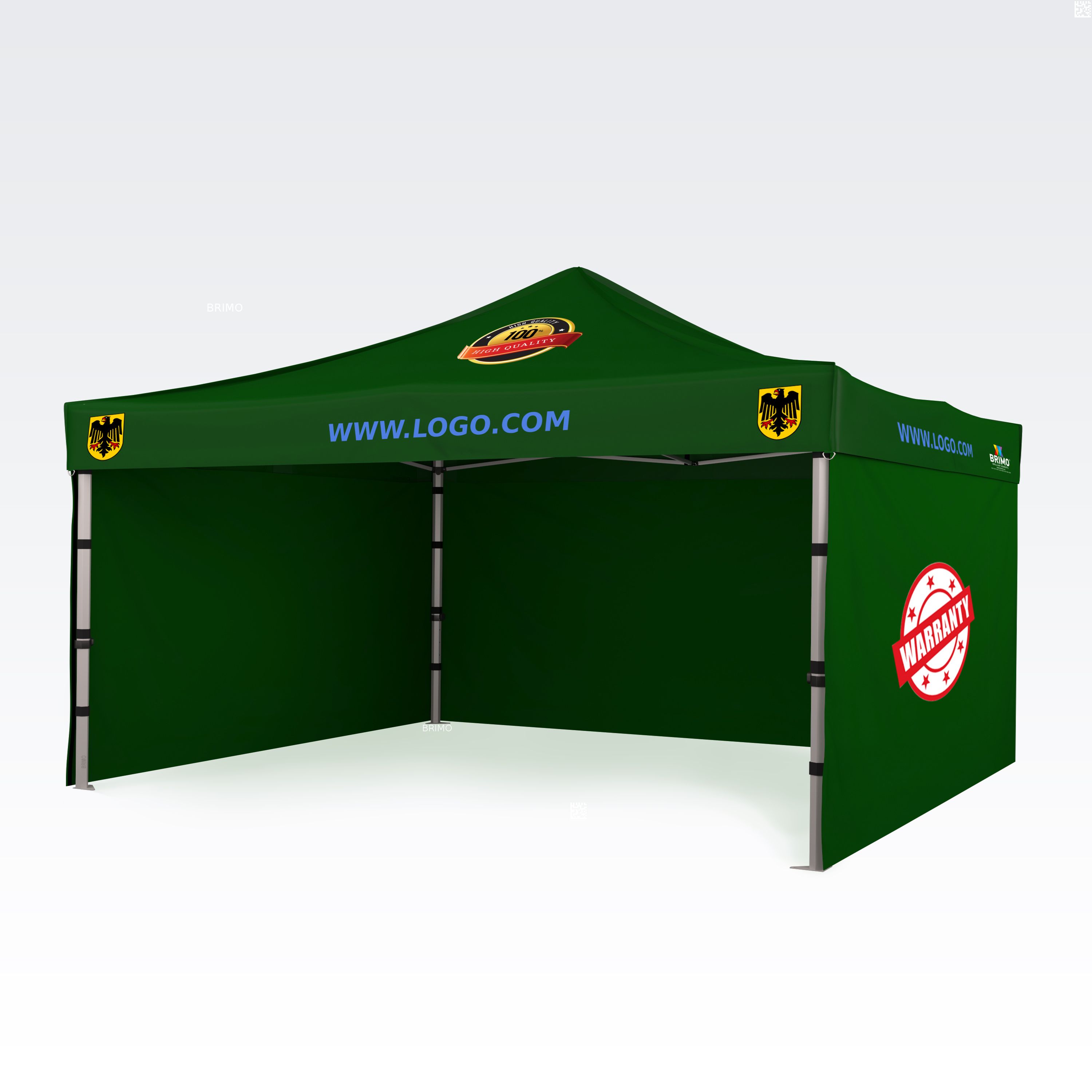 Trycket görs på tusentals tält som vi har tillverkat i förväg. Trycket kan tillverkas direkt efter att betalningen mottagits och 2D-vizualiseringen har godkänts. Den genomsnittliga produktionstiden är 2 arbetsdagar, och i brådskande fall kan vi skicka reklamtälten samma dag via kurir.