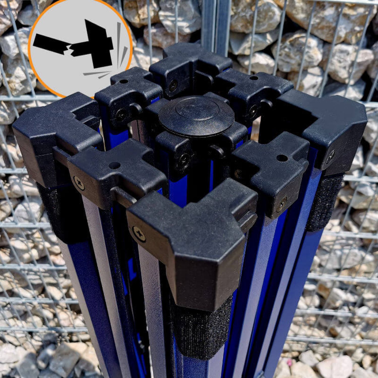 Förstärkta kontaktpunkter för lång livslängd. Alla punkter där duken kommer i kontakt med ramens metall är förstärkta med en skyddsinfällning. Det eliminerar nötning av materialet och förlänger takets livslängd.