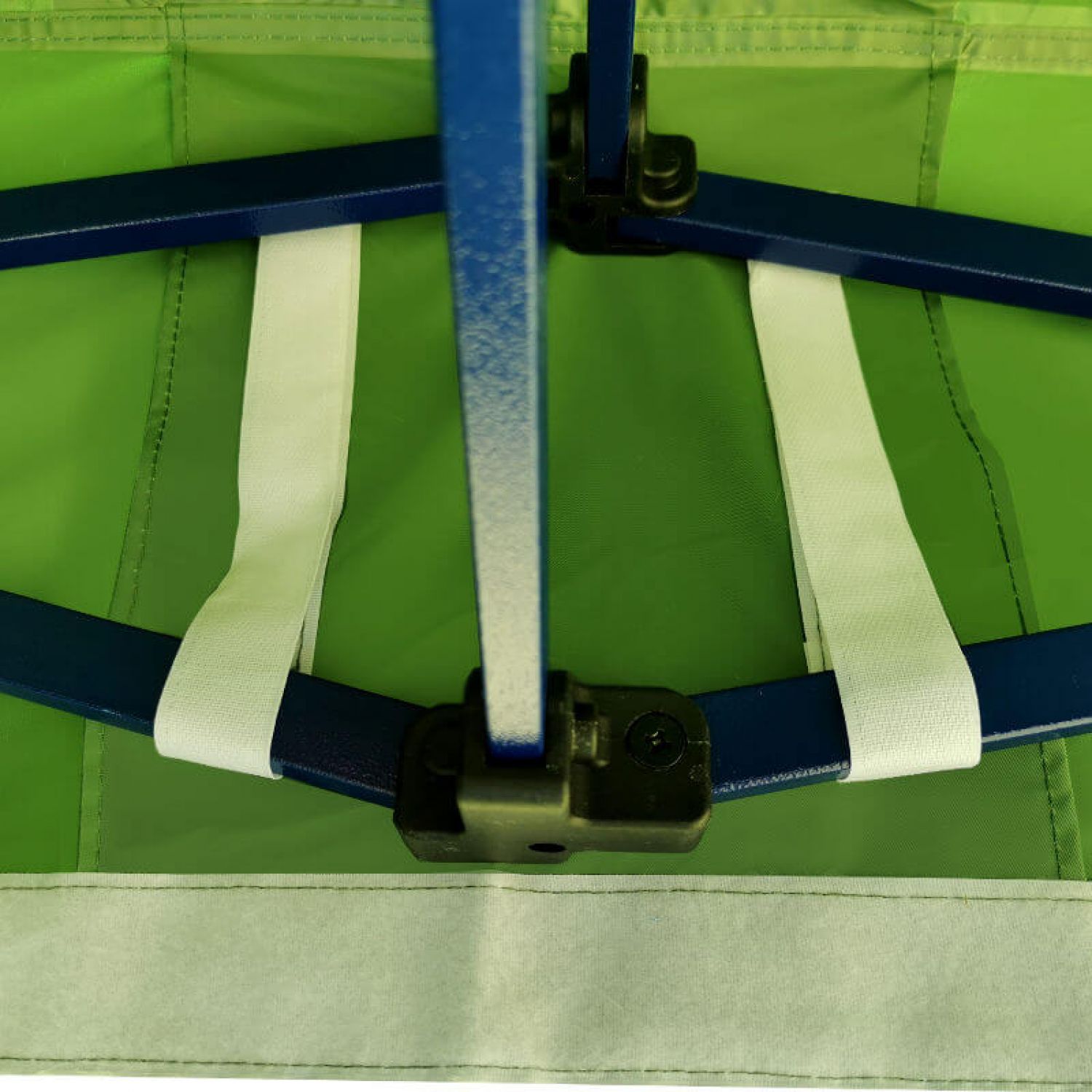 - Enkel montering med hjälp av kardborreband gör det möjligt att snabbt och säkert fästa väggarna i taket och konstruktionens ben.