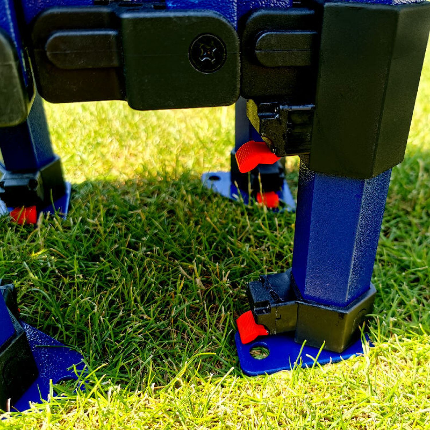 - Mjuk mark: Fästning med markspikar (ingår) för gräs, jord eller sand.