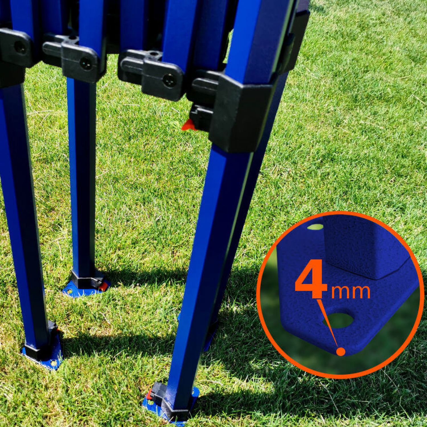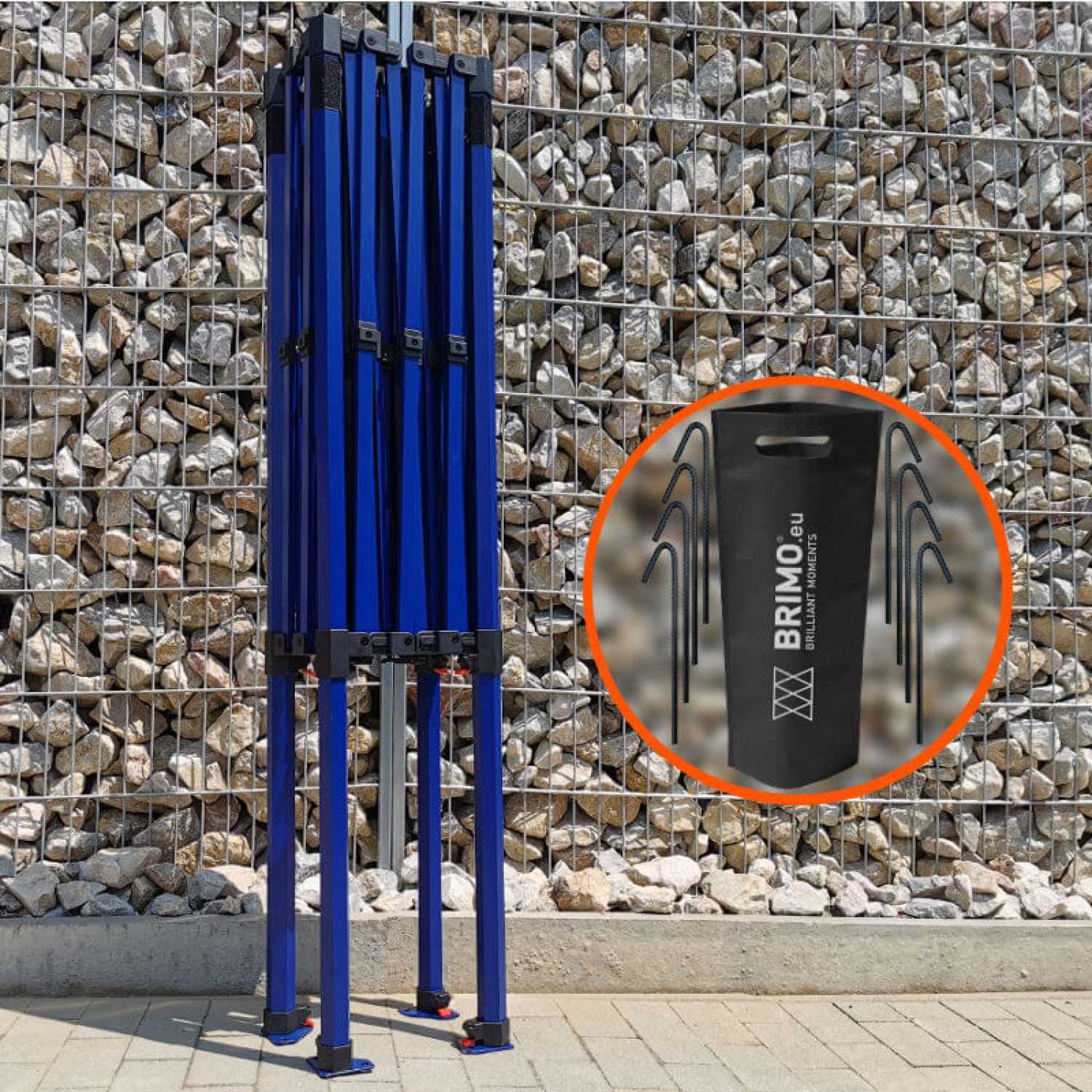 För att tältet ska vara stabilt är korrekt förankring nödvändig. Stålet är skyddat med pulverlack mot korrosion.
