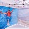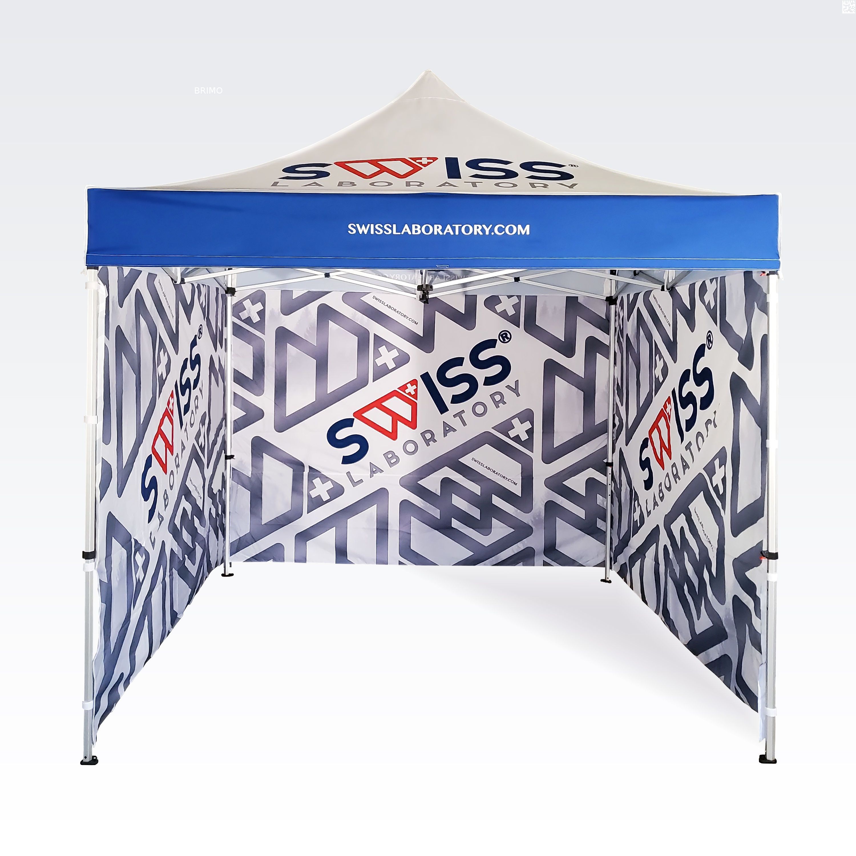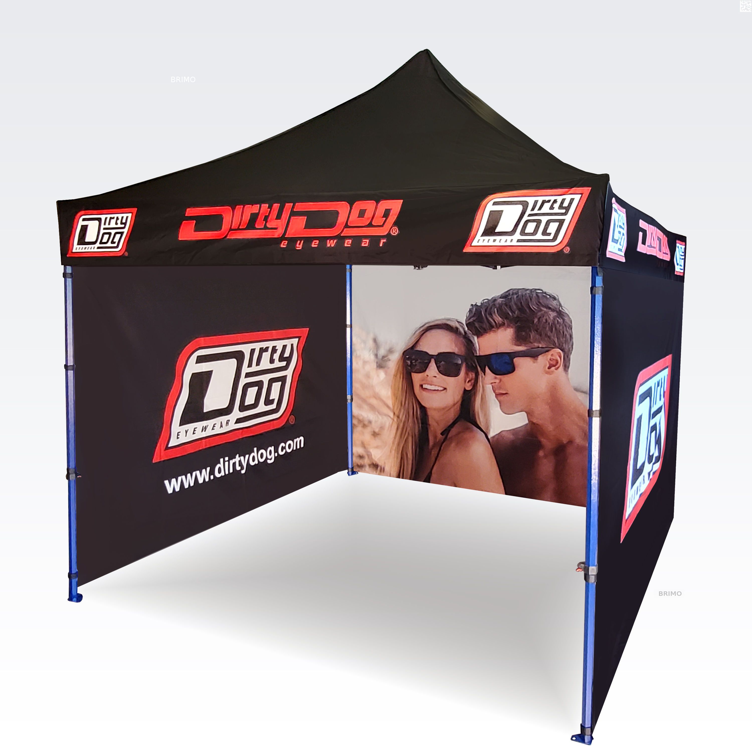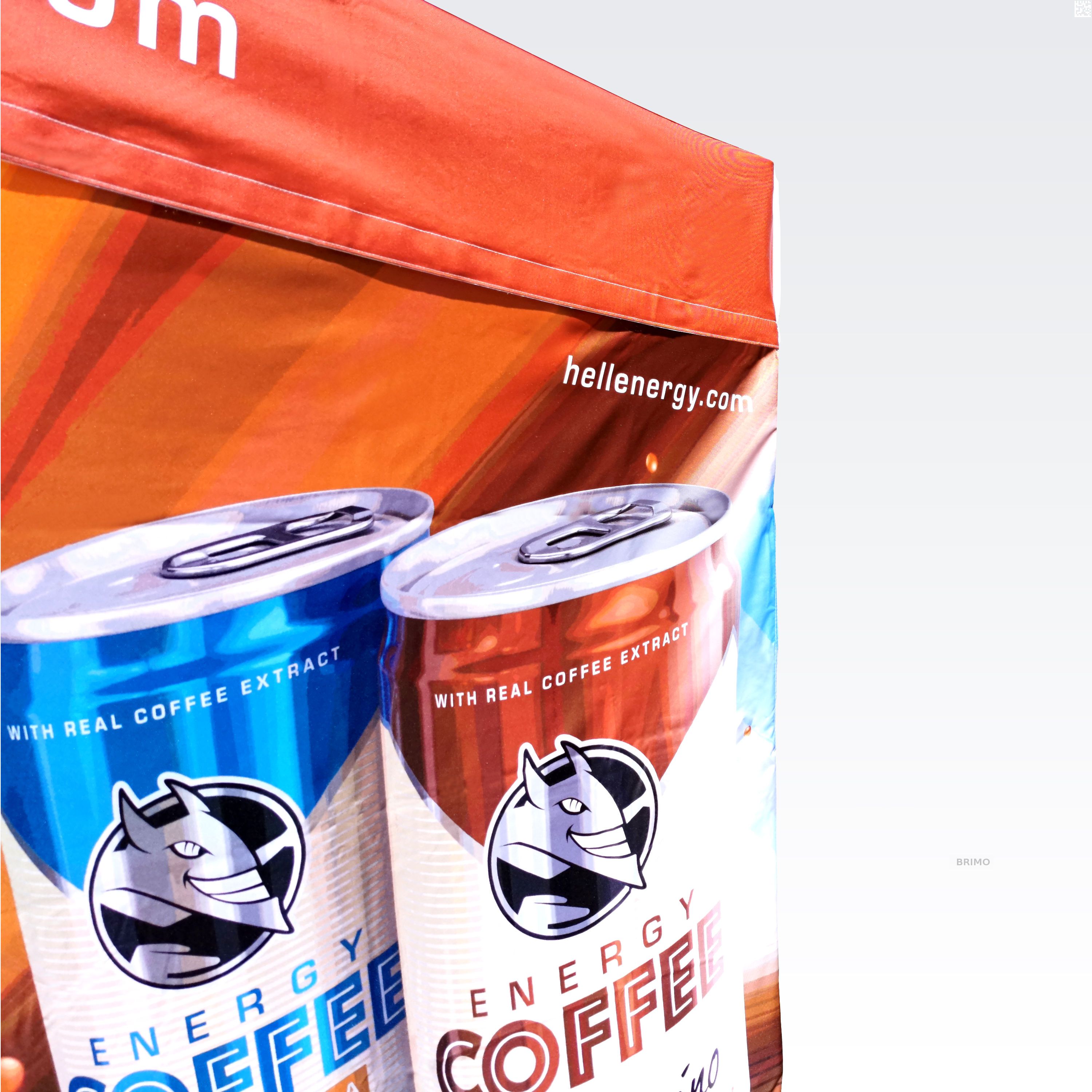 Reklamtält med digitalt sublimeringstryck. Trycket skapas under en kemisk process, bläcket tränger direkt in i tygets struktur under påverkan av hög temperatur. Logotyp, inskription, vilken typ av grafik som helst på insidan eller utsidan av tältet, enligt kundens önskemål.