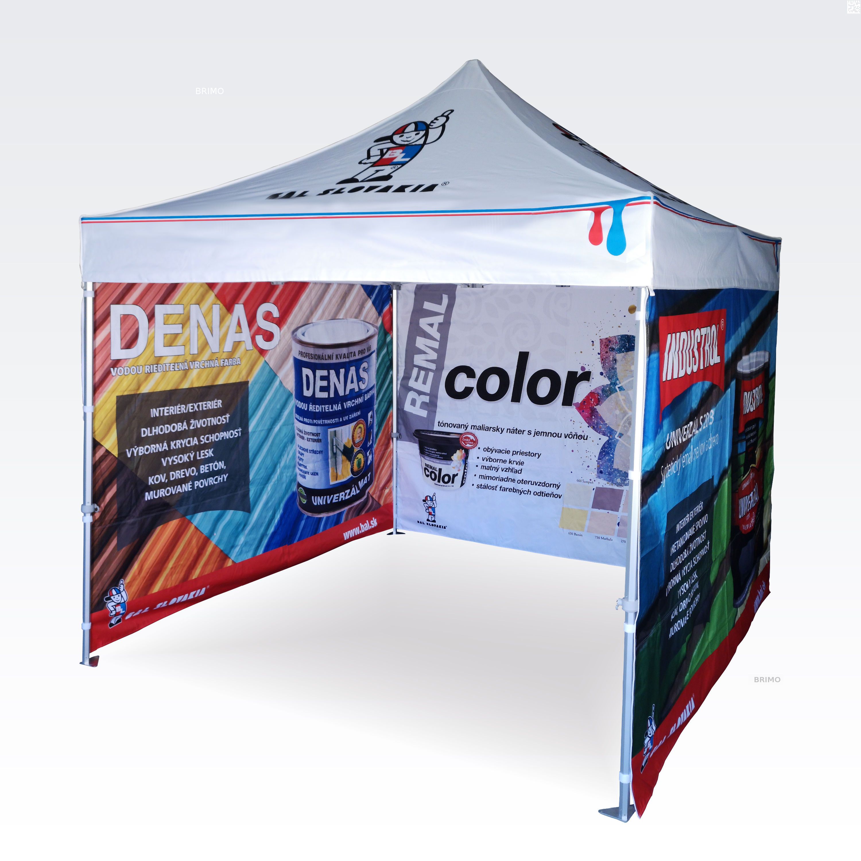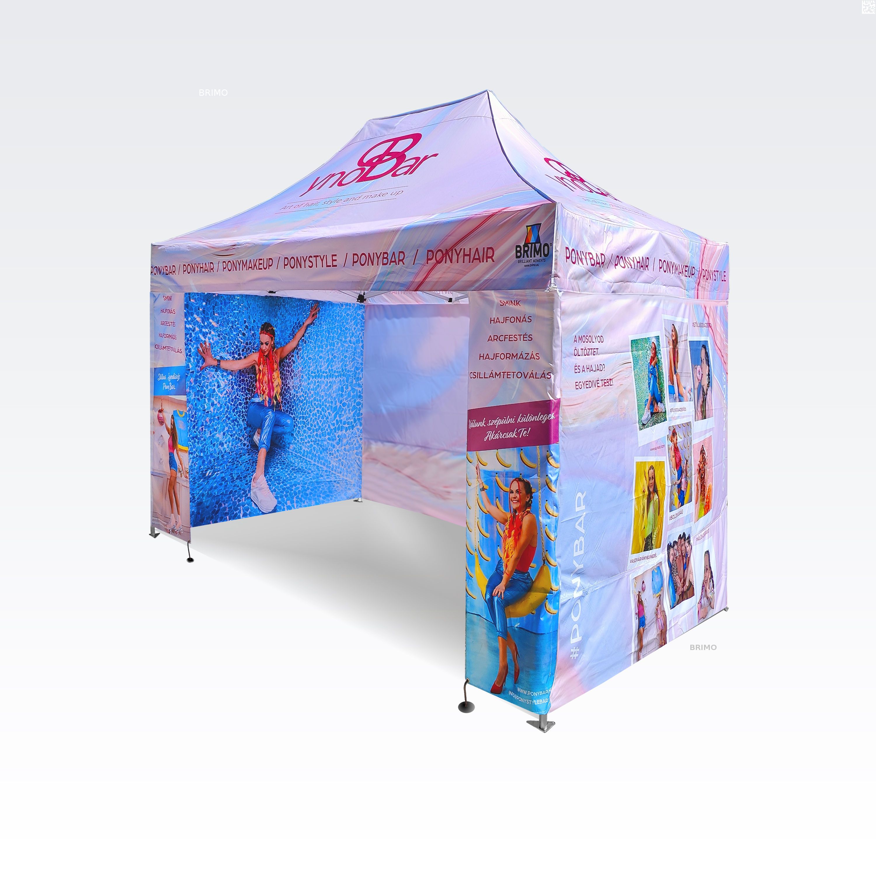 Oavsett om det handlar om en liten storlek med en yta på 2x2 m eller ett stort reklamtält på 4x8 m, trycker vi färgglada bilder på det, applicerar enskilda grafiska element eller täcker hela ytan av reklamtältet med valfritt mönster. Vi kan trycka på vilken del av tältet som helst, vilket möjliggör exakt uppfyllande av krav och genererar inga onödiga kostnader.