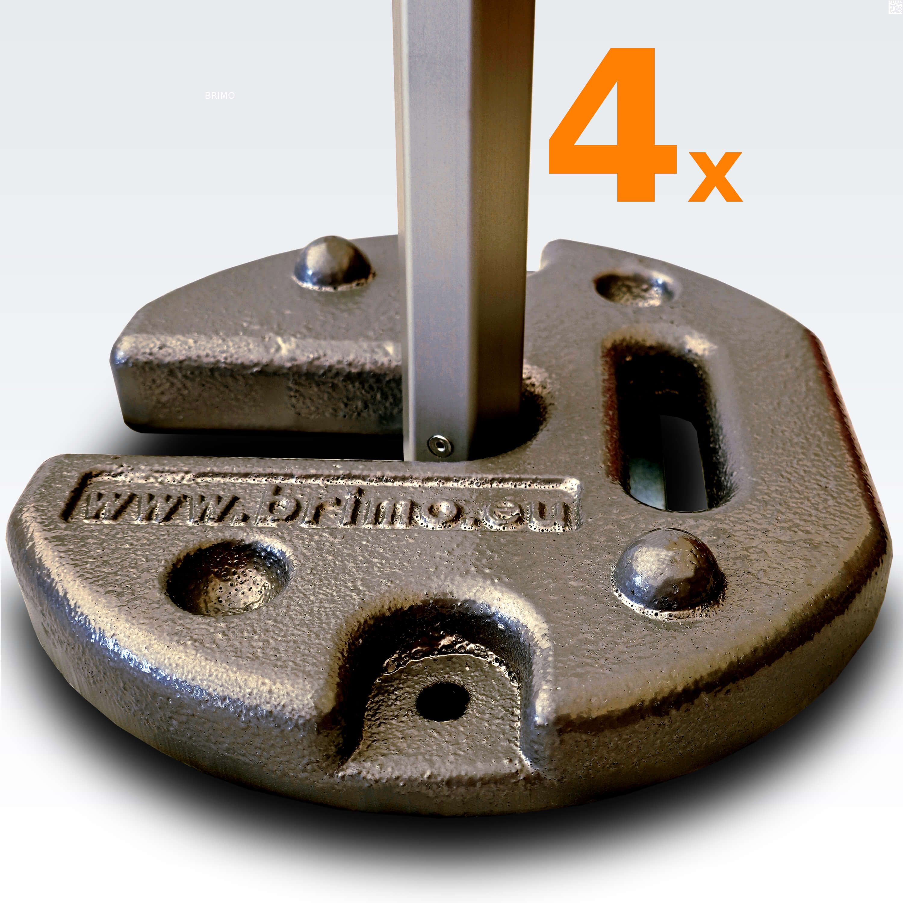 Vid blåsiga lägen och för tält större än 3x3 m rekommenderar vi att köpa 2 vikter (23 kg) per tältfot.
